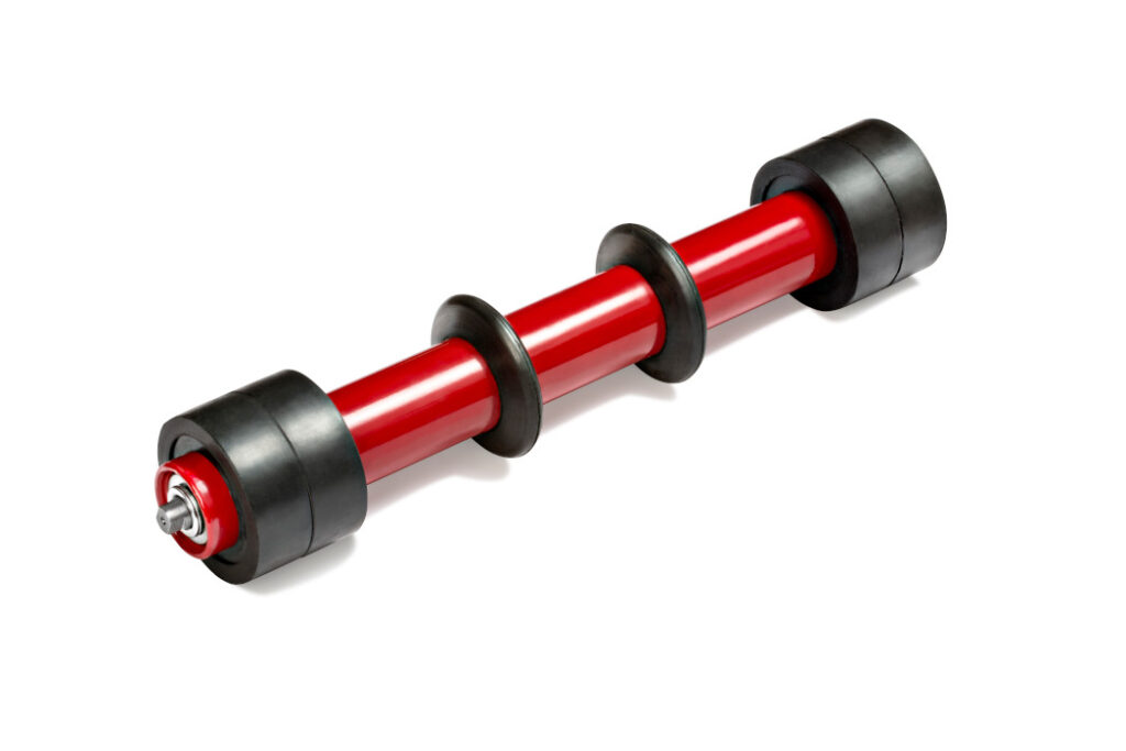 I rulli antiurto sono specificamente progettati per supportare il tirante superiore di un nastro trasportatore e sono comunemente utilizzati nei punti di trasferimento per assorbire e disperdere l’energia del materiale che cade.