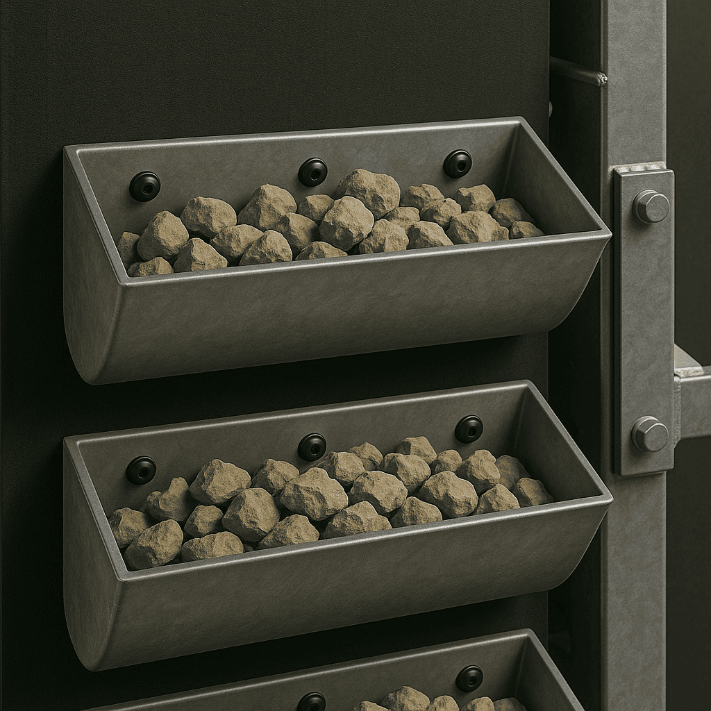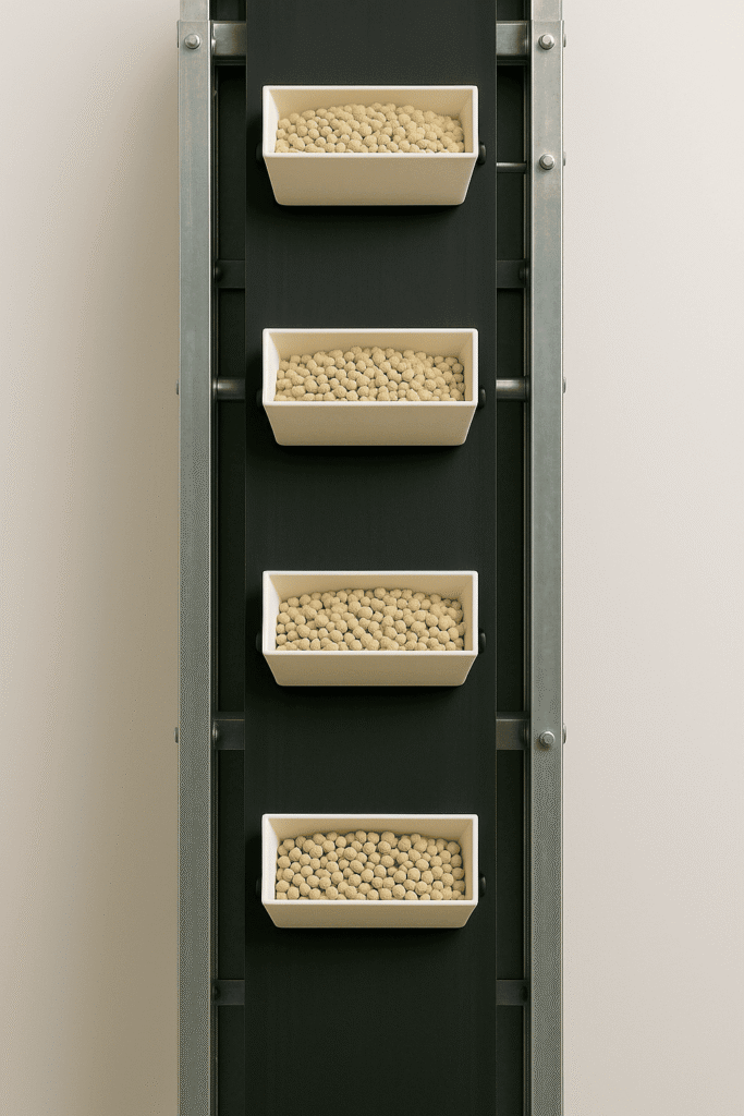 Il nastro per elevatori a tazze presenta un nucleo realizzato con tessuti sintetici in trama e ordito, con una trama rinforzata per garantire una maggiore resistenza alle sollecitazioni delle tazze, particolarmente nelle fasi di carico e scarico.